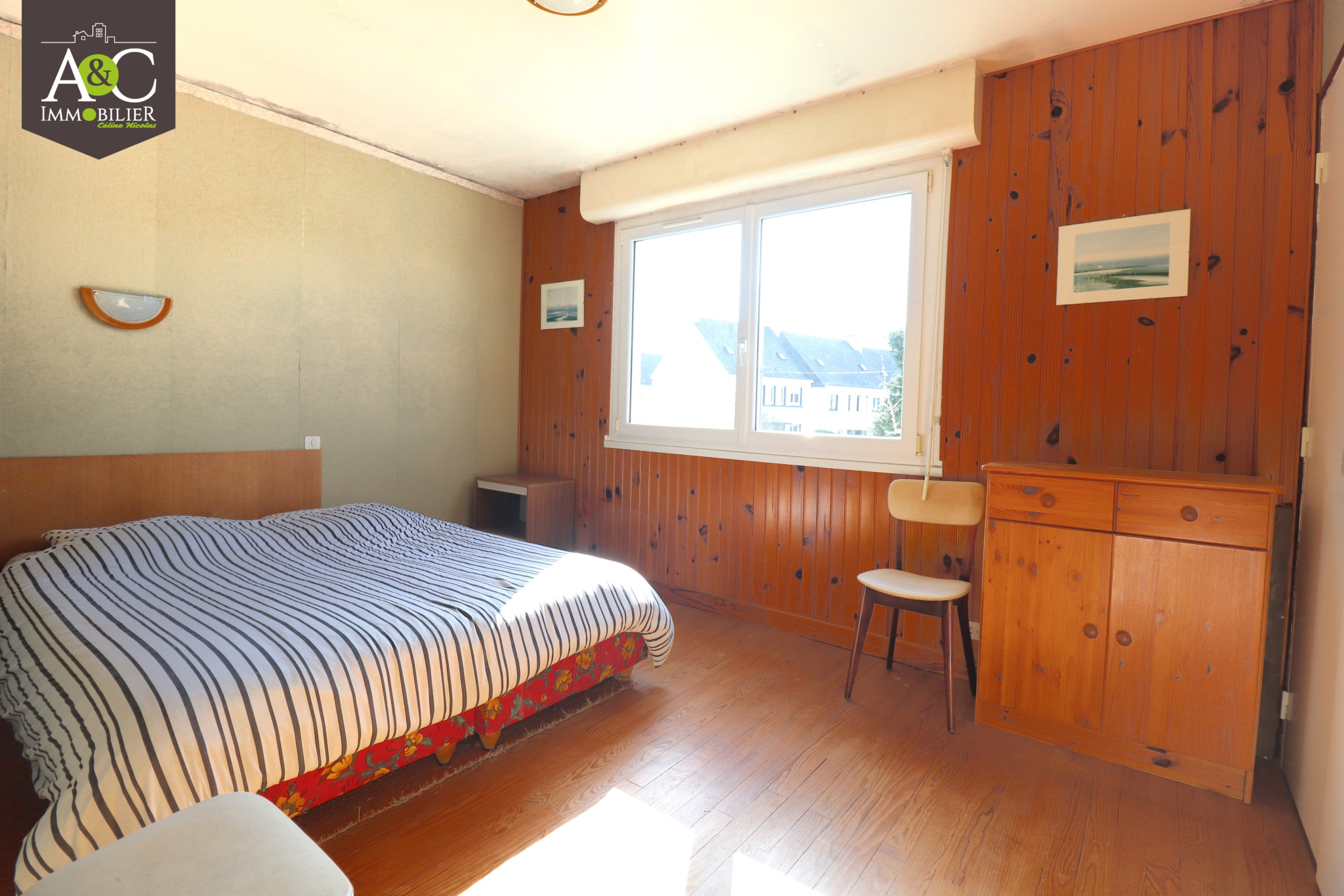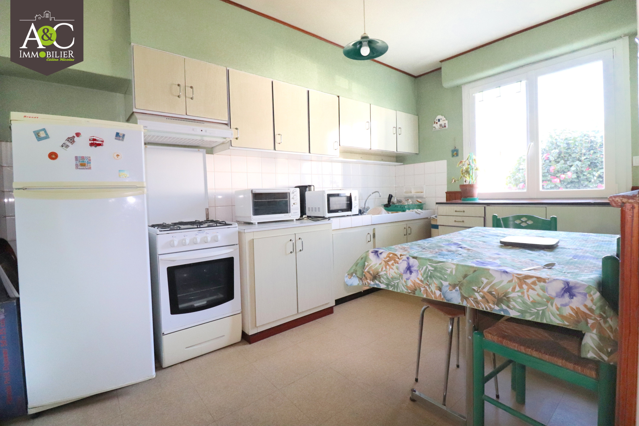 QUEVEN. TOUTES LES COMMODITES A PIED POUR CETTE LUMINEUSE MAISON COMPOSÉE AU REZ-DE-CHAUSSÉE : D'UN HALL D'ENTRÉE AVEC DEUX PLACARDS, CUISINE AMÉNAGÉE, SALON/SÉJOUR AVEC CHEMINÉE ET TERRASSE EXPOSEE PLEIN SUD ; AU PREMIER ÉTAGE : QUATRE BELLES CHAMBRES DONT DEUX AVEC PLACARDS ET SALLE DE BAINS. GRAND GRENIER AMÉNAGEABLE AU SECOND SUR DALLE BETON. GARAGE ET BUANDERIE. L'ENSEMBLE SUR UN TERRAIN DE 448M² ENTIEREMENT CLOS. HONORAIRES INCLUS 4,5% T.T.C. www.aetcimmo.fr Les informations sur les risques auxquels ce bien est exposé sont disponibles sur le site Géorisques http://www.georisques.gouv.fr