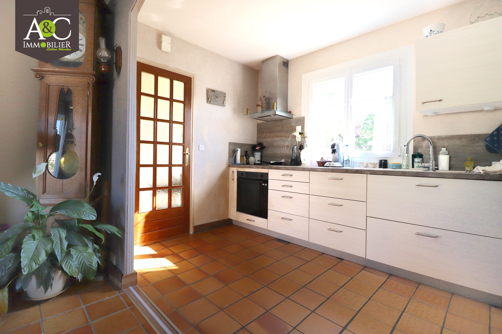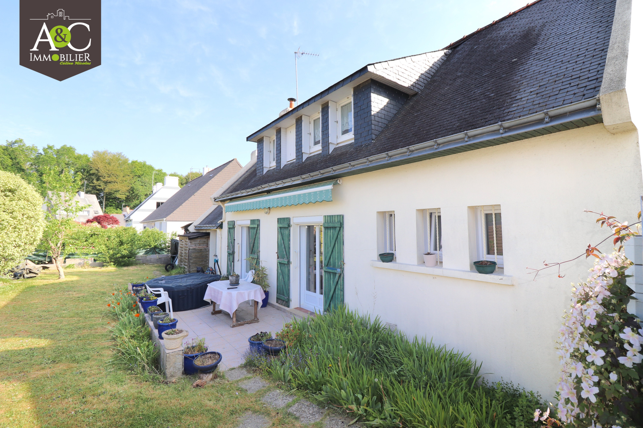 QUEVEN. TOUTES LES COMMODITÉS A PIED. ENVIRONNEMENT PRIVILÉGIÉ DANS LE CENTRE BOURG POUR CETTE NÉO-BRETONNE QUI VOUS OFFRE LA VIE DE PLAIN-PIED. ELLE SE COMPOSE AU REZ-DE-CHAUSSÉE : D'UNE CHAMBRE, SALLE D'EAU, HALL D'ENTRÉE, CUISINE AMÉNAGÉE ET ÉQUIPÉE OUVERTE SUR VASTE SALON/SÉJOUR AVEC CHEMINÉE, ARRIERE CUISINE/BUANDERIE ET APPENTIS ACCOLÉ ; AU PREMIER ÉTAGE : DÉGAGEMENT, TROIS CHAMBRES DONT DEUX AVEC PLACARDS. L'ENSEMBLE SUR UN TERRAIN DE 594M². HONORAIRES INCLUS 4,5% T.T.C. www.aetcimmo.fr Les informations sur les risques auxquels ce bien est exposé sont disponibles sur le site Géorisques http://www.georisques.gouv.fr